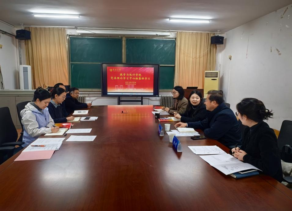 12月10日下午,数学与统计学院在励行楼301会议室召开党委理论学习中心组理论学习会,专题学习党的二十届四中全会精神、习近平总书记重要讲话和警示教育等相关内容。校党委理论学习中心组列席旁听第三工作组组长、离退休党委书记、处长宋佐东,校党委宣传部张雯列席旁听。学院党委理论学习中心组全体成员、党委组织员、挂职干部参加学习会,会议由学院党委书记刘琪主持。