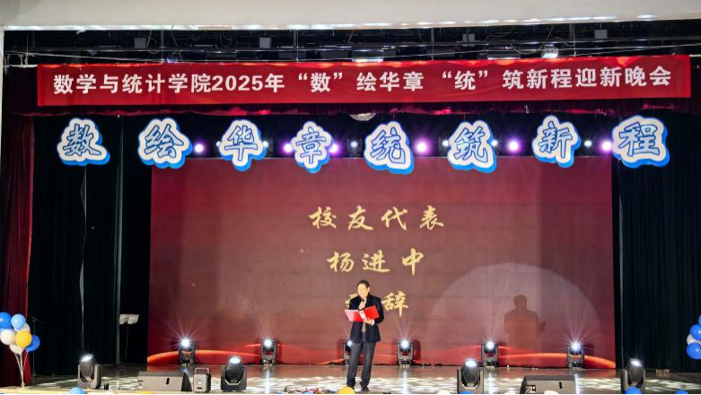 我是91级数学校友杨进中,受邀在母校数学与统计学院的迎新晚会上发言感到特别紧张、激动,同时也倍感荣幸。站在这里,看着大家青春洋溢的面庞,我仿佛穿越时光,看见了三十年前那个刚走进数学系的自己﹣满怀憧憬,也带着对未知的些许忐忑。